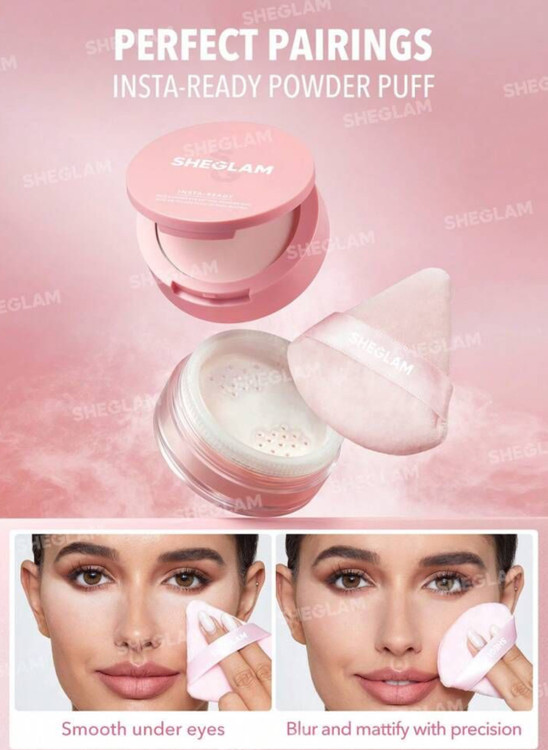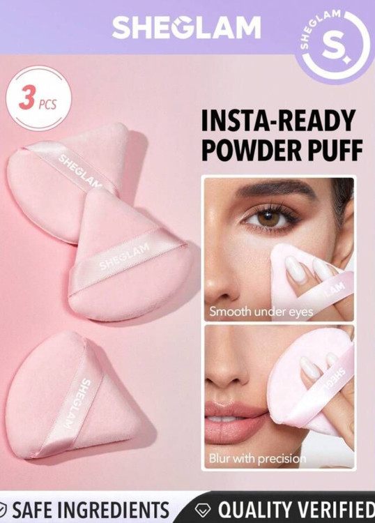 پد سه عددی پودر شیگلم مدل Insta Ready برای انواع پودرهای نرم و فشرده (پنکک، پودر بیک، پودر فیکس) مناسب است و دارای یک شکل مثلثی است که به آن اجازه می دهد که به تمام نواحی صورت برسد.