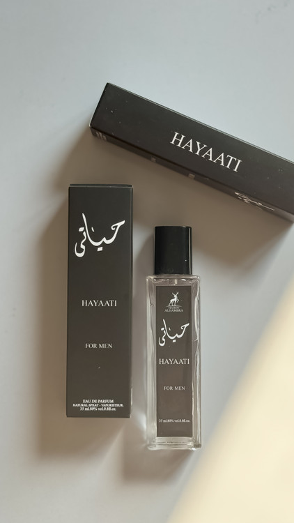 عطر 35 میل الحمرا حیاتی HAYAATI طبع خنک و تلخ گروه بویایی چوب جنسیت اسپرت نوع عطر ادو پرفیوم همه فصول ماندگاری 8 الی 12 ساعته پخش بو زیاد