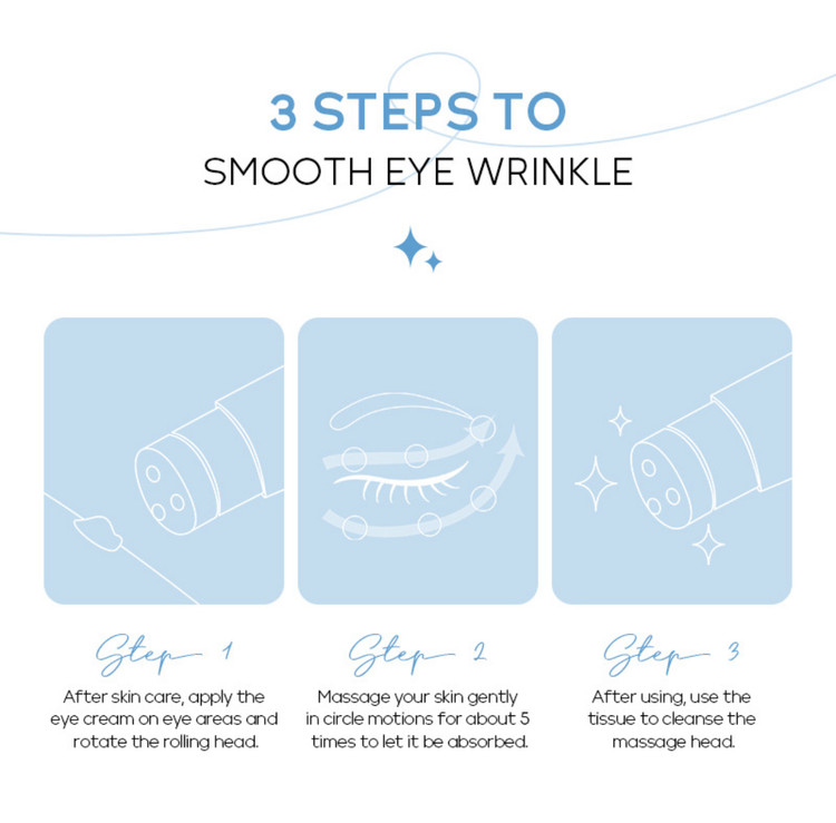 غلتک کرم را روی پوست دور چشم قرار داده و از بالا به پایین و در ادامه از چپ به راست حرکت داده تا کرم پوستتان را ماساژ دهد.