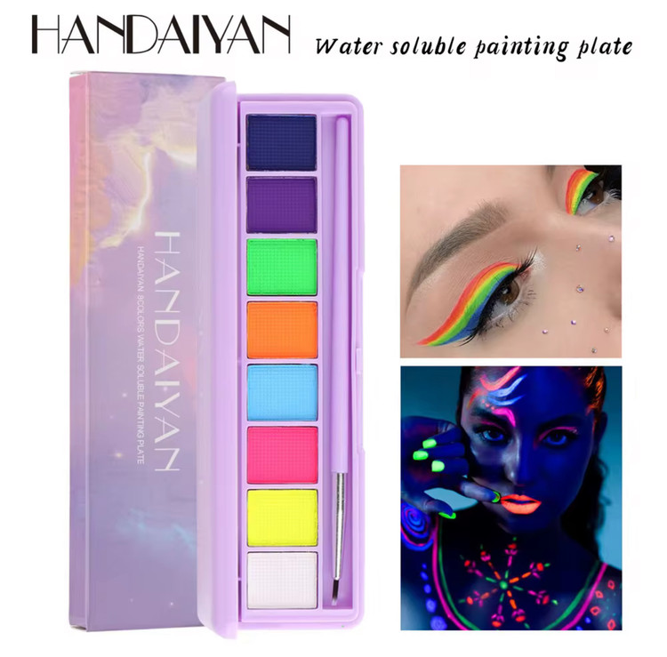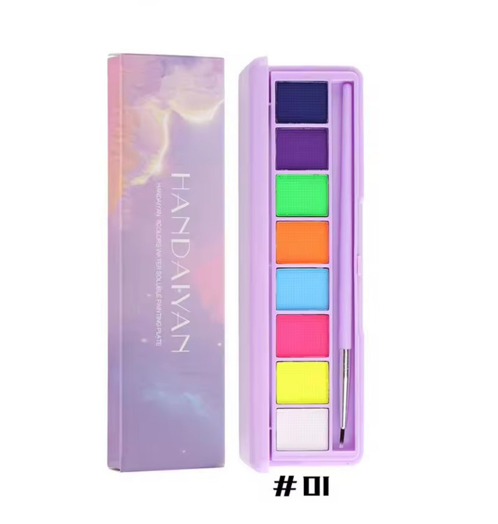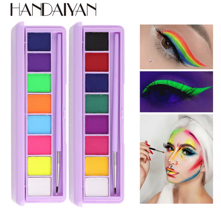 پالت خط چشم آبرنگی/واتراکتیو هندیان ❤️🔥✨ این پالتا با آب فعال میشن و نه تنها خیلی به صرفهان و مشکل خشک شدن خط چشمای معمول رو ندارن، پیگمنت خیلی خوبی هم دارن و خاصیت جادویی دیگهشون اینکه میشه رنگاشون رو ترکیب کرد و رنگای جدید ساخت! 🧚🏽♀️🪄💗 هر پالت شامل 8 رنگ کاربردی و نئونیه و علاوه بر خط چشم و سایه چشم میتونید برای نقاشی روی بدن و گریم هم ازشون استفاده کنید. 🔥 ورق بزنید و ویدئوی تست رنگ غیرژورنالیش رو ببینید 🫡 توضیحات محصول: ORIGINAL - Handaiyan شامل دو کد رنگی جذاب نئونی واتراکتیو رنگها به راحتی باهم ترکیب میشن قابل استفاده به عنوان خط چشم، نقاشی روی بدن، گریم و… پیگمنت بسیار بالا ماندگاری طولانی مدت به راحتی پاک میشه یه قلم داره توی جعبهاش انقضا: 2027 نحوه استفاده: استفاده از این محصول خیلی راحته، کافیه قلممو رو خیس کنید و به مقدار لازم روی مواد بکشید تا رنگ رو به خودش بگیره، درست مثل آبرنگ