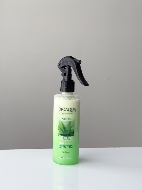اسپری مو کراتینه بیواکوا حاوی آلوئه ورا یک محلول دوفاز حاوی ترکیبات نرم کننده و مغذی است که به صاف شدن و تقویت موها کمک می کند. اسپری دو فاز بایواکوا فرموله شده با آلوئه ورا و پروویتامین B5 بوده و با بازسازی ساقه مو از وز شدن موها جلوگیری کرده و باعث خوش حالت شدن آنها می شود.. اسپری دوفاز مو آلوئه ورا بیواکوا باعث افزایش حالت پذیری موها شده و مانع گره خوردن موها می شود و کار شانه زدن موها را آسان میکند. این اسپری مو برای موهای خشک بسیار مناسب بوده و به خوبی بافت موها را آبرسانی و ترمیم می نماید.