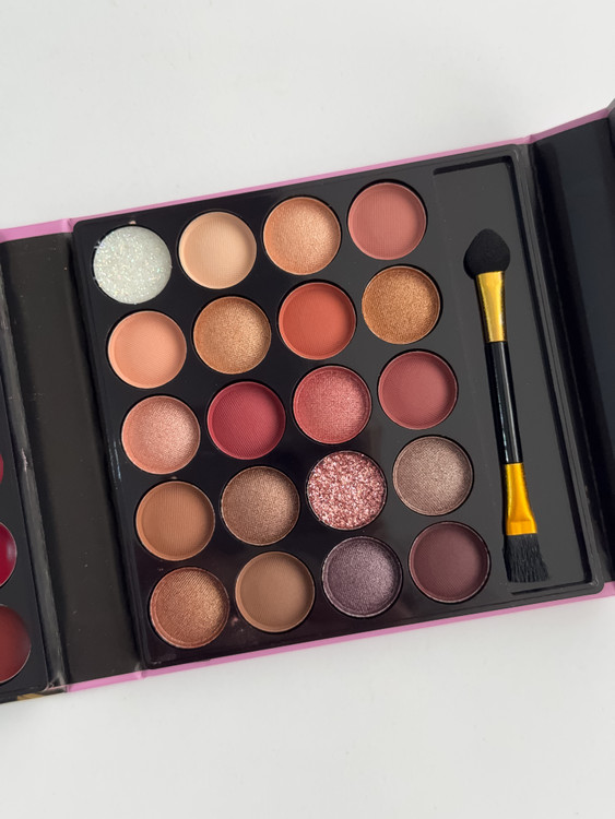 مجموعه کامل شامل رژگونه، هایلایتر، رژلب، سایه ابرو و سایه چشم