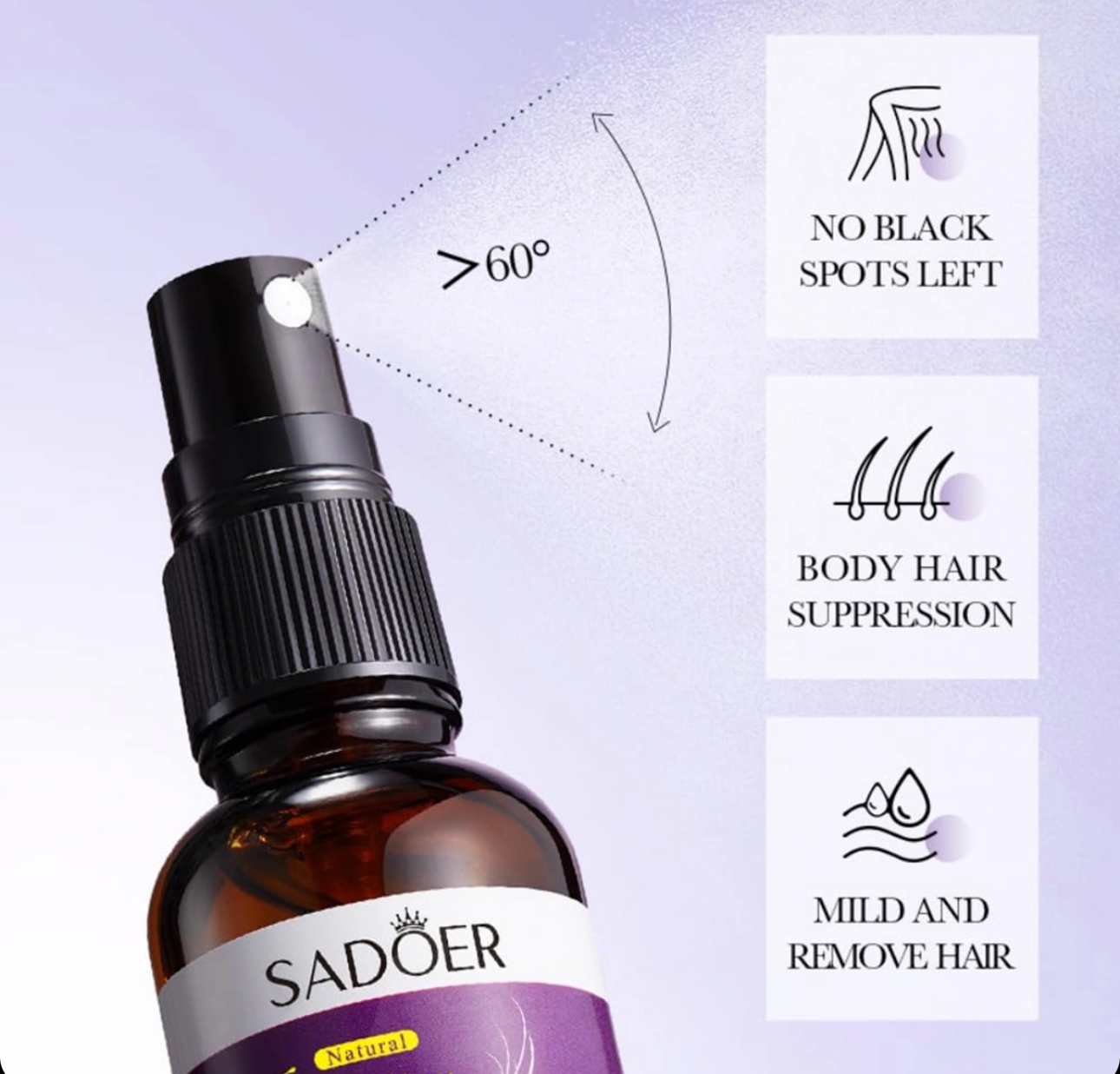 اسپری کاهش دهنده رشد مو اسطوخدوس سادور قابلیت کند نمودن رویش و رشد مجدد موها، نازک نمودن قطر و کاهش تراکم موهای ناخواسته، تضعیف پیاز مو و از بین بردن موهای زائد با خواص مرطوب کنندگی و ترمیم کنندگی پوست صورت و بدن را دارد.