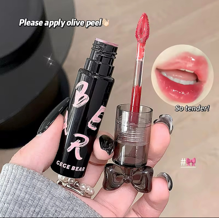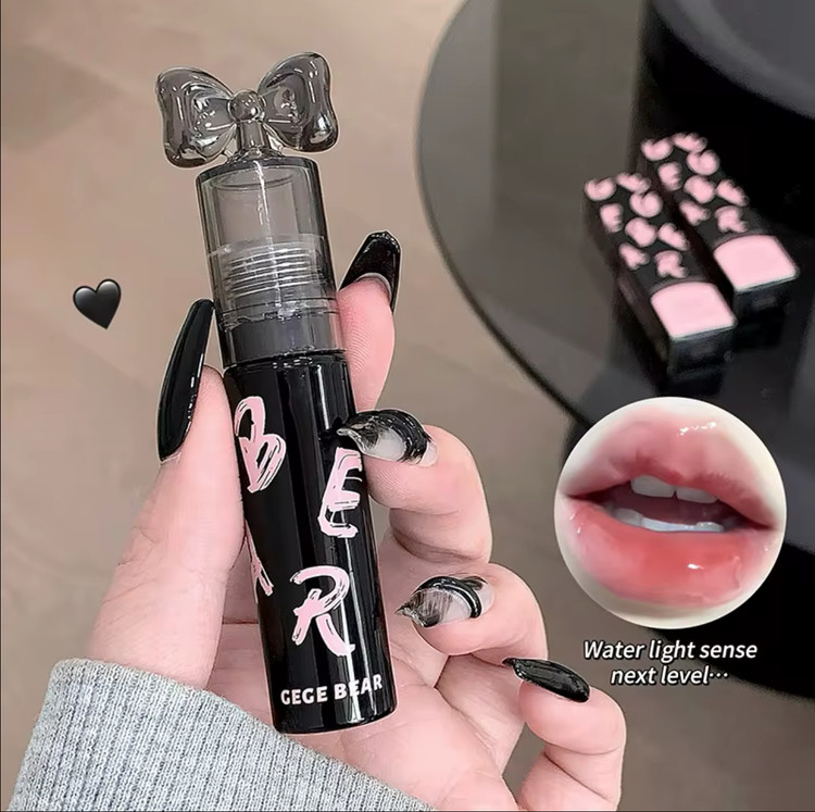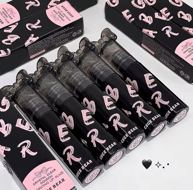 طراحی : پایه شفاف پاپیونی + درب مشکی براق با نوشته صورتی BEAR + اپلیکاتور برگشکل برای استفاده دقیق