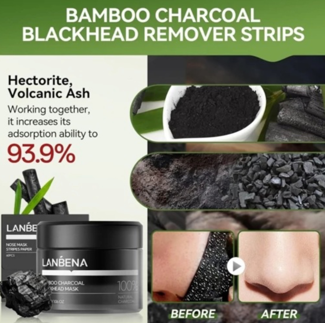 نام محصول: چسب بینی جوش سرسیاه زغال بامبو لانبنا