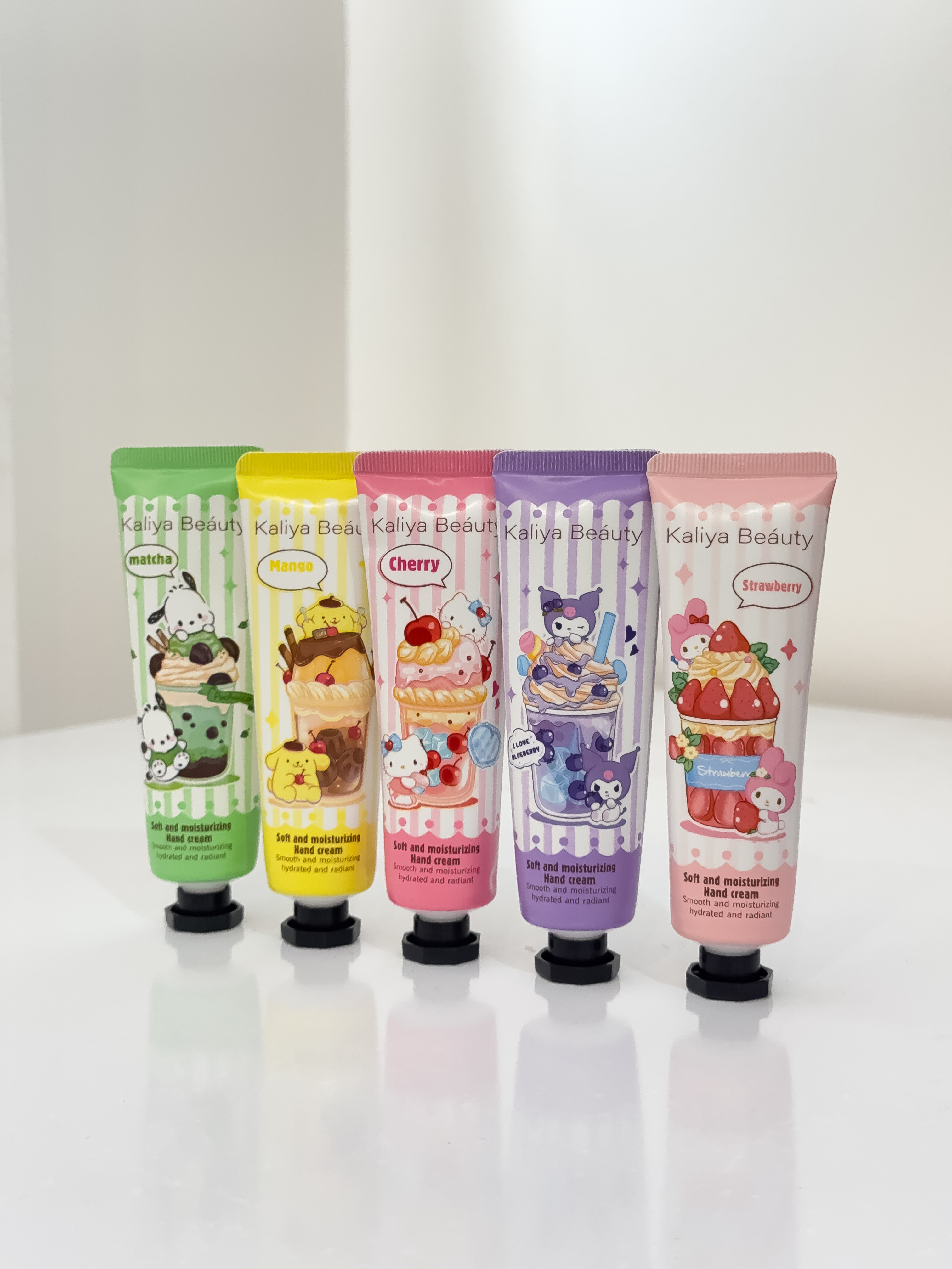 پک 5 عددی کرم دست سایز 30 میل مرطوب کننده و آبرسان مناسب هدیه دادن قابل حمل داخل کیف حاوی عصاره های بلوبری ، توتفرنگی ، آلبالو ، ماچا ، انبه