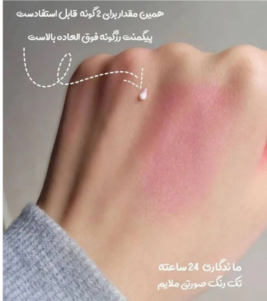 -رژگونه کاملا بی رنگه بعد از اینکه روی پوست میزنید به صورتی خیلیییی خوشرنگ و طبیعی تغییر رنگ میده🩷🩰