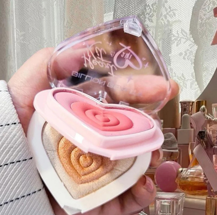 رژگونه و هایلایتر قلبی دو طبقه billion beauty